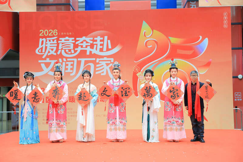 启动现场,萧山区燕云艺术团带来的越剧演唱,婉转悠扬;萧山区农民书画协会的书画家们挥毫泼墨,把现场创作的“福”字与春联作品,赠予在非遗传承、社区服务、公益事业等方面作出贡献的市民代表以及旅客;浙江旅游职业学院文化传播与艺术学院带来的舞蹈《蹴鞠图》,则展现运动之美。此外,近景魔术互动、男女二重唱《春风十万里》等节目精彩纷呈。
