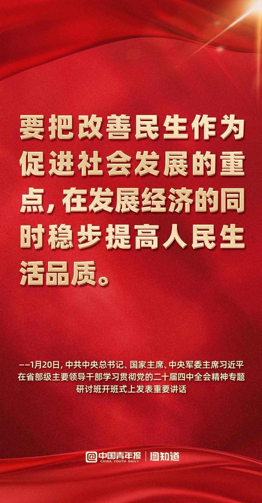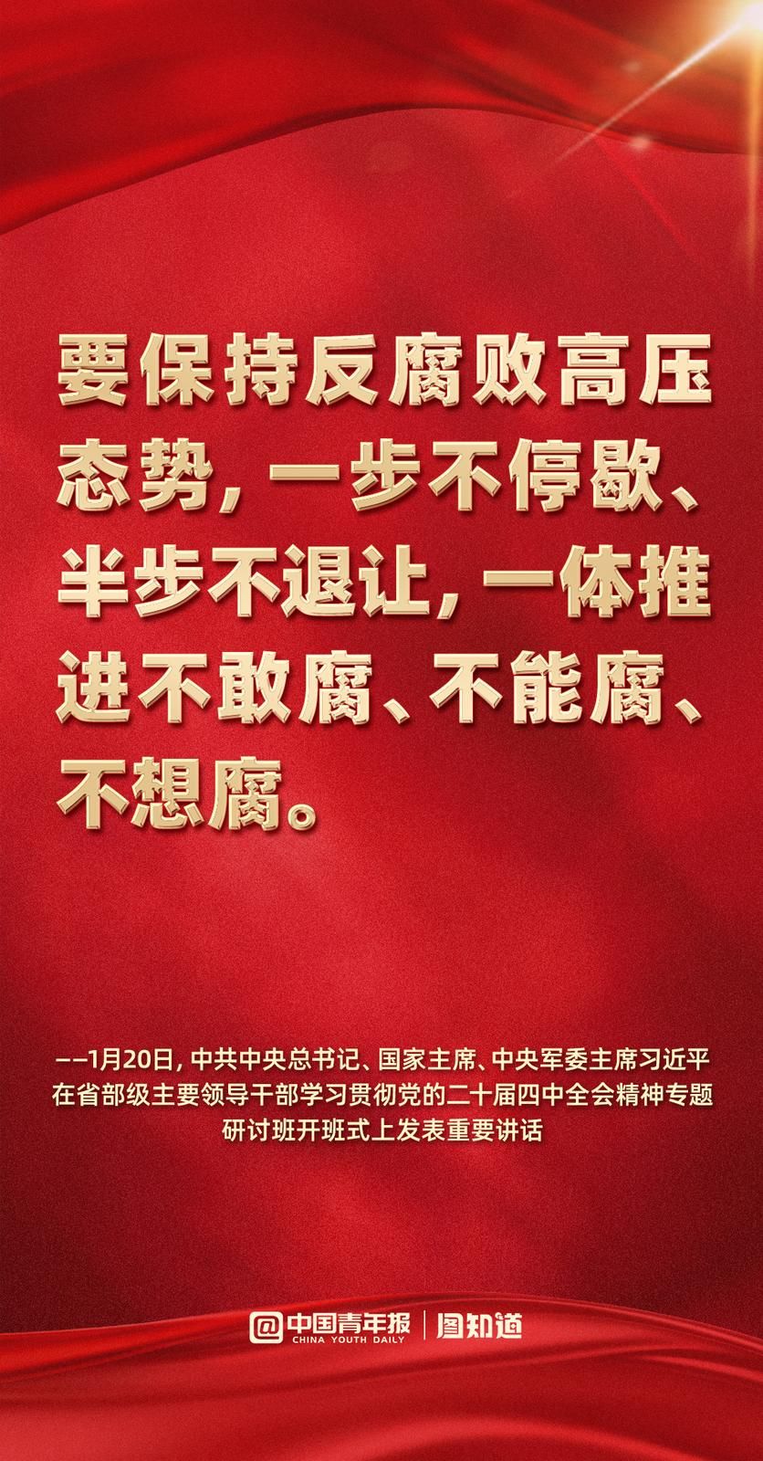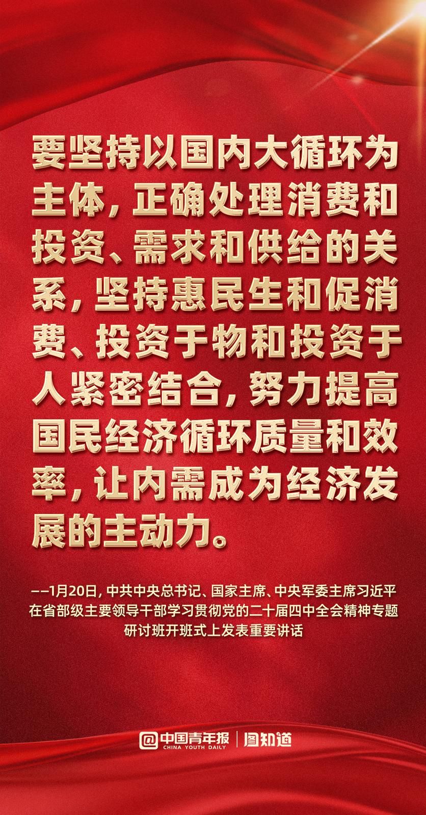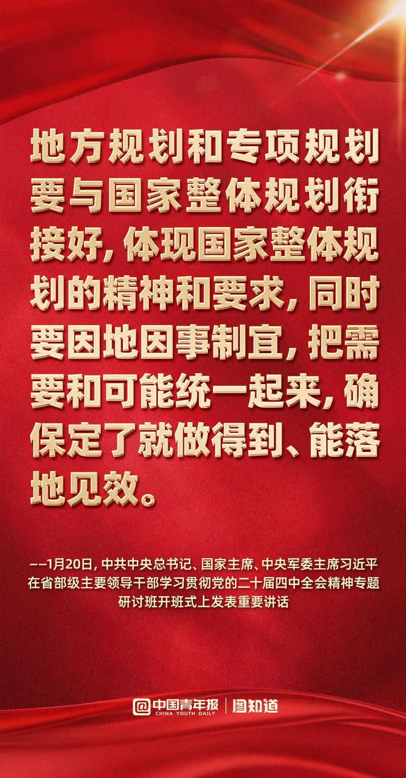 中国青年报客户端 | 2026-01-20 20:181月20日,中共中央总书记、国家主席、中央军委主席习近平在省部级主要领导干部学习贯彻党的二十届四中全会精神专题研讨班开班式上发表重要讲话强调,要把学习贯彻党的二十届四中全会精神不断引向深入,更好统一思想、凝心聚力,在党中央坚强领导下扎实做好各项工作,努力实现“十五五”良好开局。一起学习。