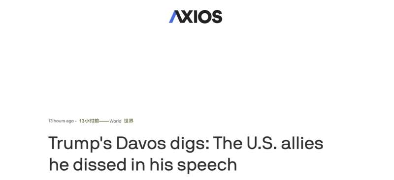 美国有线电视新闻网评价称,特朗普在达沃斯的演讲“充满了对欧洲同行们的怨言与侮辱”。