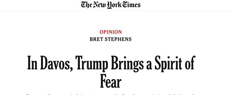 “在达沃斯,特朗普带来了恐惧的氛围。”《纽约时报》写道。