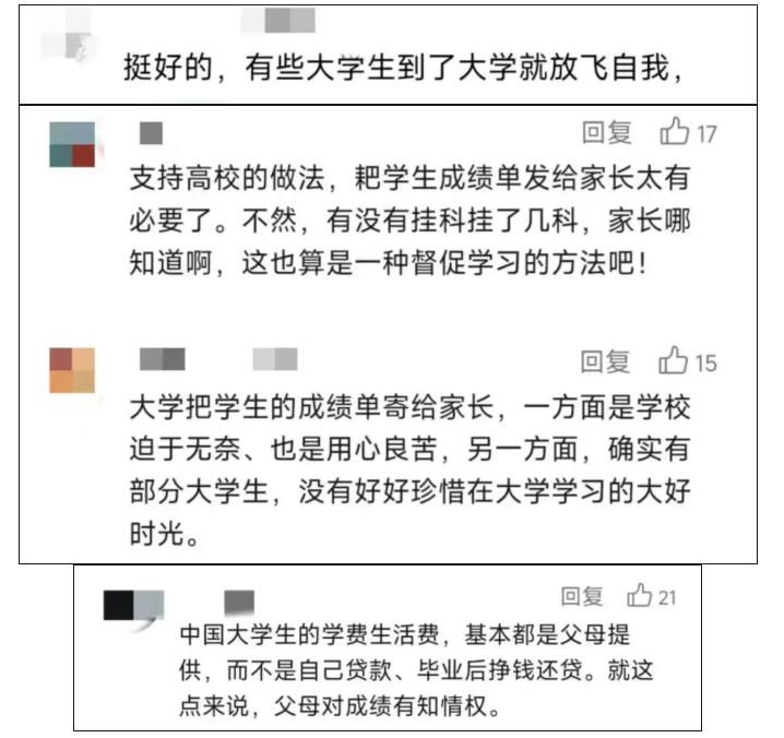 有网友认为此举是对学生负责,一定程度上能打通学校和家庭间的信息不对称,同时家长对学生成绩也有知情权。