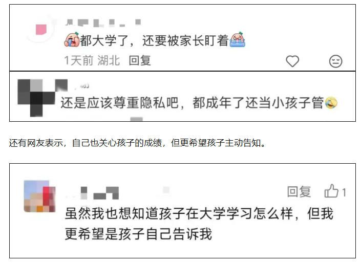 也有网友认为此举不妥,大学生已经是成年人,能够为自己的在校表现负责。