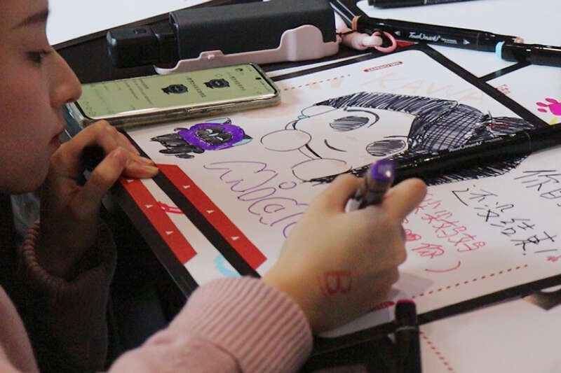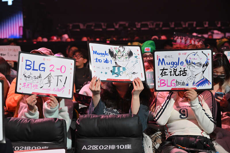 VCT CN联赛启点赛,观众为支持的战队绘制应援牌。 湛江科技学院 黄宇翔/摄