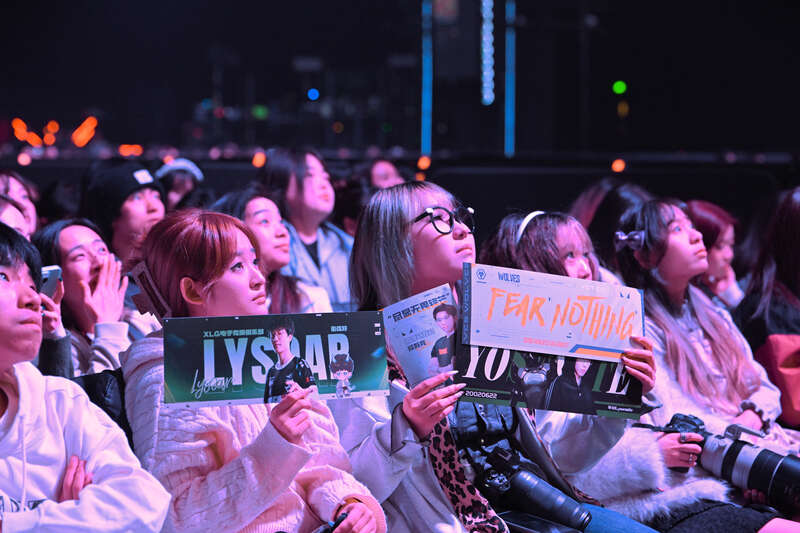 VCT CN联赛启点赛,观众为支持的队伍举牌加油。湛江科技学院 黄宇翔/摄