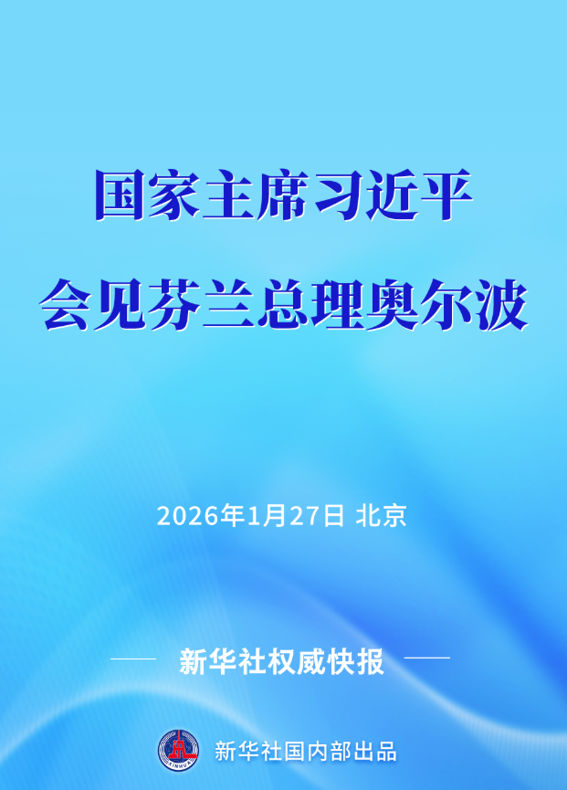 1月27日上午,国家主席习近平在北京会见来华进行正式访问的芬兰总理奥尔波。