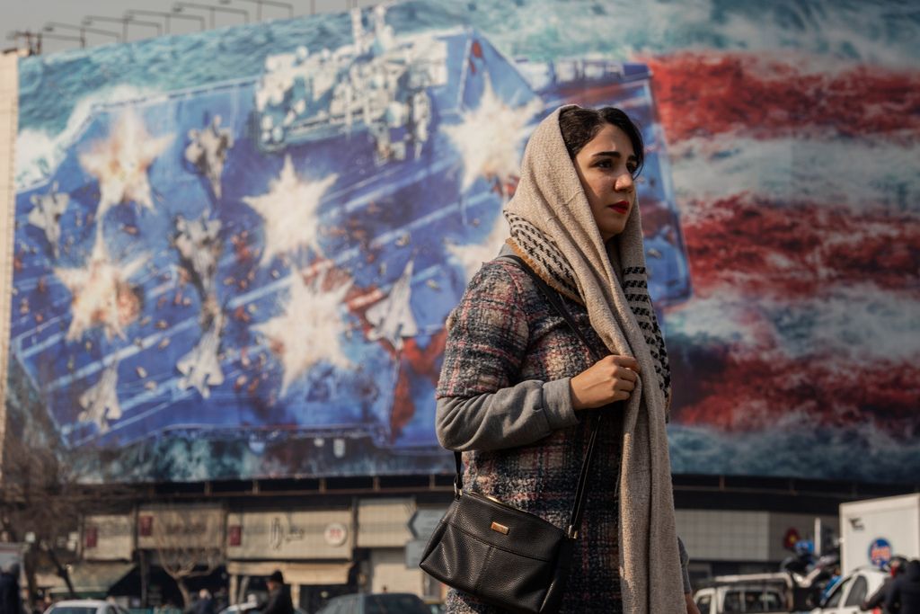 当地时间2026年1月27日,伊朗德黑兰,恩格拉布广场巨型广告牌上,出现了一幅新的壁画,内容是直接警告美国不要试图对伊朗发动军事打击。画布上展示了一艘航空母舰的俯视图,其飞行甲板上有受损并发生爆炸的战斗机。甲板上布满尸体,血迹斑斑,血水流淌到船后的海水中,形成类似美国国旗条纹的图案。画布一角赫然写着一句标语:“种风者必收旋风。”