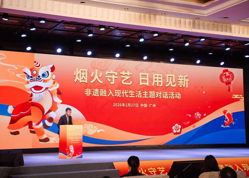 中国青年报客户端讯(刘心悦 中青报·中青网记者 林洁)近日,“烟火守艺日用见新”非遗融入现代生活主题对话在广州开展。此次对话是2026年“非遗贺新春·寻味中国年”主题推广暨非遗年货购物月的重要组成部分。传承人、非遗工坊、文旅行业、电商平台、科技企业及传播机构,从传承人的技艺视角讲文化根脉,从企业的市场视角谈落地路径。