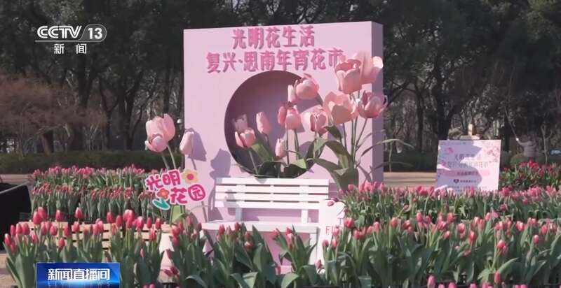 与往年不同的是,今年的花市除了覆盖老石库门建筑群,还将规模扩大至复兴公园内,在公园里打造了600平方米的以郁金香鲜花为主的花园。