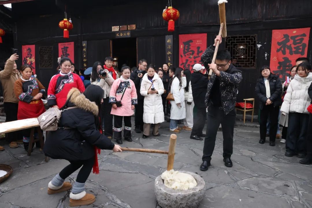 奋斗的回甘需亲身探寻,“幸福的味道”篇章随即铺展。青年嘉宾在十八洞村精准扶贫陈列馆,感悟脱贫攻坚到乡村振兴的奋斗历程;梨子寨设立了“忆酸惜甜”“思苦知甘”“持咸守真”“热辣滚烫”“品甜筑梦”等五大主题打卡点,青年在参观、寄语、听奋斗故事中品味人生真谛。精准坪广场更是热闹非凡,打糍粑、品米酒、赏非遗相映成趣,让婚恋交友与年俗体验相得益彰。《幸福从十八洞出发》图片展同步亮相,十八对笑脸均来自2013年总书记考察后十八洞村脱贫脱单的青年夫妇,用真实案例生动诠释“幸福是奋斗出来的”。