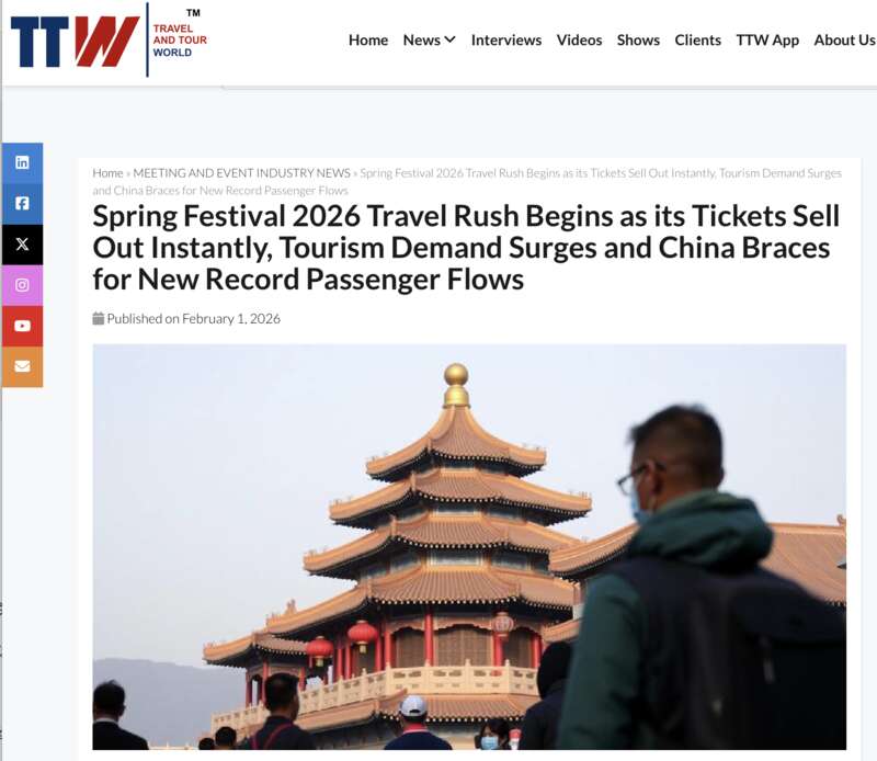 路透社称,2026年春节极可能成为中国旅游史上最具影响力的时期之一。《旅行与旅游世界》认为,此次春节展现出的跨代际出行需求与旅游消费行为,进一步凸显了中国旅游体系的多元化格局。