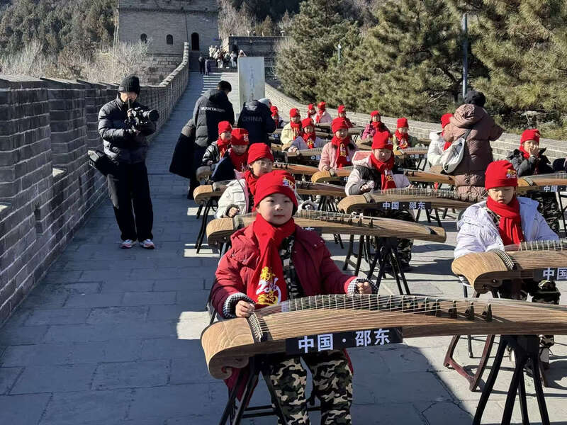 上周末,居庸关长城上传来阵阵悠扬琴声。40余名来自湖南省邵东市的小学生在长城上奏响古筝。一场以“传承经典・筝韵长城——奏响文化传承新乐章”为主题的文化实践活动,让千年古迹与千年雅乐深情对话,为冬日雄关增添了浓厚的文化韵味。