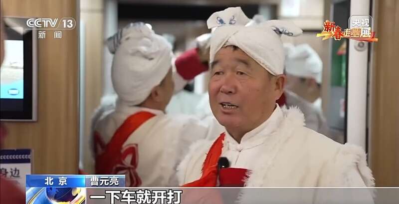 总台央视记者 郑连凯:现在的时间1月26日早上7点30分,延安的天刚蒙蒙亮,腰鼓队队员已经赶到延安站,稍后他们要搭乘延安开往北京的G359次首发列车。