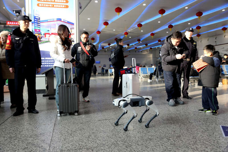 在福州南站,智能服务机器人“阿福”春运首日正式上岗,为乘客提供智慧出行体验。