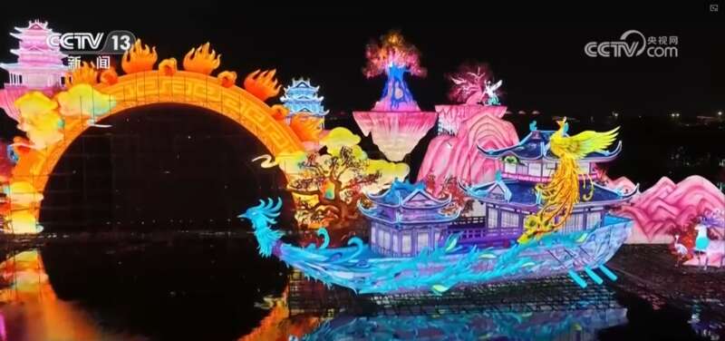 这座大型灯组《百鸟归巢》以凤凰展翅为核心,周边百鸟盘旋,展现出百鸟朝凤、吉祥如意的恢弘景象。1月31日晚,厦门方特东方神画新春灯会也精彩亮相,约16米高的主灯组“琼楼仙境”把广场装点得如梦似幻,游客穿行其间,沉浸式感受新春的喜庆氛围。