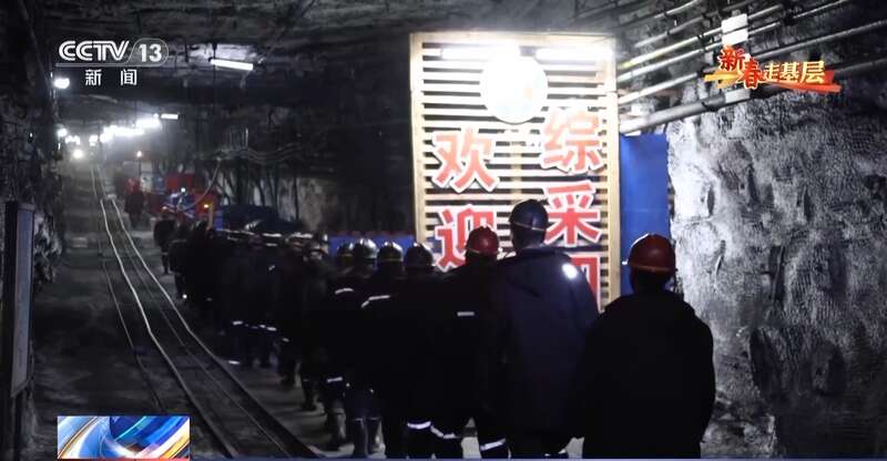 总台记者 崔肖冉:从小火车上下来,明显感觉到风力特别大,其实一路上,越往下风力是越大的,在墙上我们可以看到,上面写着距井口11900米,也就是说我们走了将近12公里了。