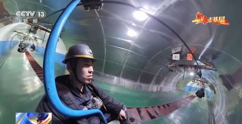 总台记者 崔肖冉:现在我们终于到了这个采煤工作面,距离地面的垂直距离大概有400多米,现在我们要钻过这个铁桥,来到采煤的一线。