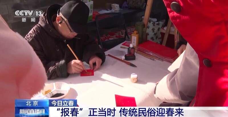 “报春”是立春节气的传统习俗。昨天(3日),在北京东四街道,锣鼓声响、春官报喜,市民们祈福迎春,在写春字、逛年货中感受着立春的喜气。