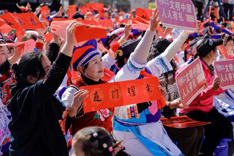 中国青年报客户端讯(中青报·中青网记者张文凌)2月8日,云南大理白族自治州剑川县剑阳楼下,一场以“联墨”为媒的文化盛宴,为新春的云南大地铺展出一幅传统与现代交织的画卷。2026年全国“我们的节日·春节”主题文化活动暨“联墨飘香迎新春·古韵新风颂文明”原创楹联诗词展示活动在此启幕,将中华楹联的千年文脉与白族风情的鲜活气息熔于一炉,让传统文化在新时代的土壤中绽放新芽。