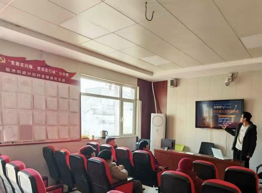 图为团队成员在村委会介绍我们的平台