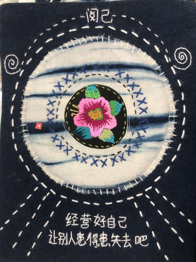 这名26岁的姑娘大学毕业后,回家和母亲一起做刺绣服装生意。她小时候住在外婆家,看着外婆吃完饭就约着几个姐妹一起绣花。外婆还给潘晓慧也准备一个小绣片,让她绣着玩儿。放寒暑假时,她和母亲一起在北京潘家园摆摊儿卖过绣品、跑过展销会。她也看到,母亲因为文化程度低,吃了不少亏。