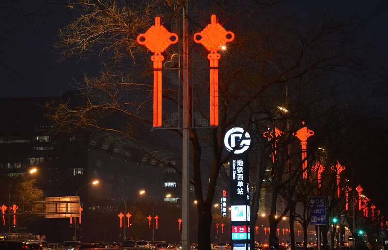 “两纵”:东单北大街一线与西单北大街一线在二环内路段,统一悬挂中国结灯饰,进一步烘托核心区域的传统韵味与节日氛围。