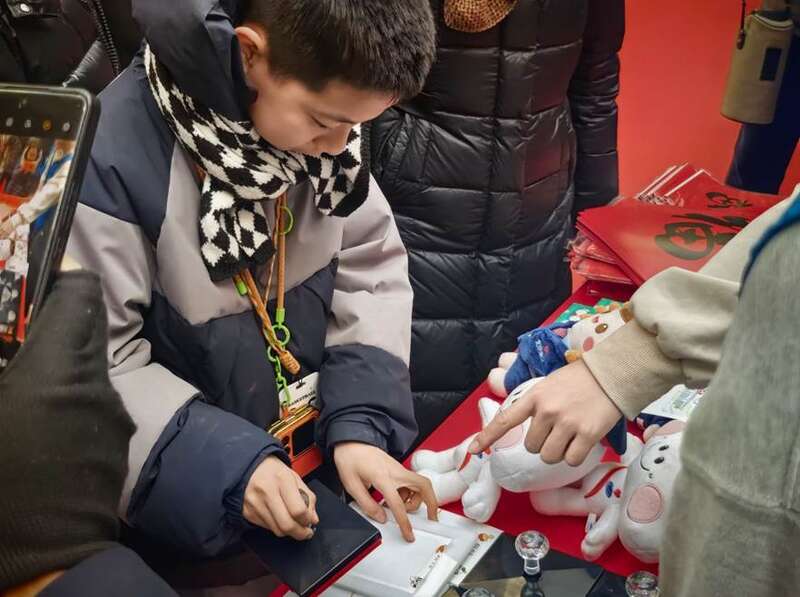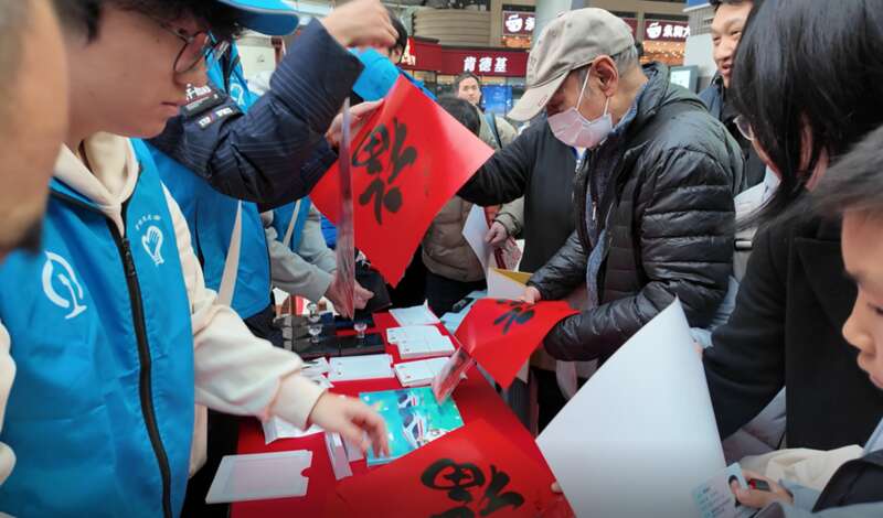 戏韵犹在耳畔,墨香已悄然漫开。活动现场,来自中国书法家协会、北京书法家协会及中国铁路书法家协会的书法家们挥毫泼墨,一幅幅充满吉祥寓意的“福”字和春联被送到旅客和职工手中。