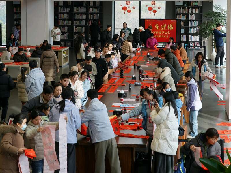 中国青年报客户端合肥2月10日电(中青报·中青网记者 王海涵 王磊)2月10日,农历小年上午,合肥市文化新地标——市中心图书馆内飘满“暖意墨香”。这里举办“笔墨迎春·读者共书”新春送福活动,近500名市民读者参与。