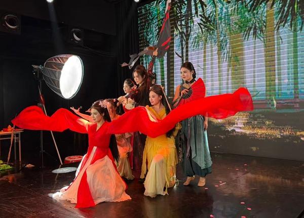 直播间内,水袖飞扬、身姿灵动,华丽的光影搭配悠扬的国风背景音乐,十余位舞者依次登台,一举一动都透着专业功底。