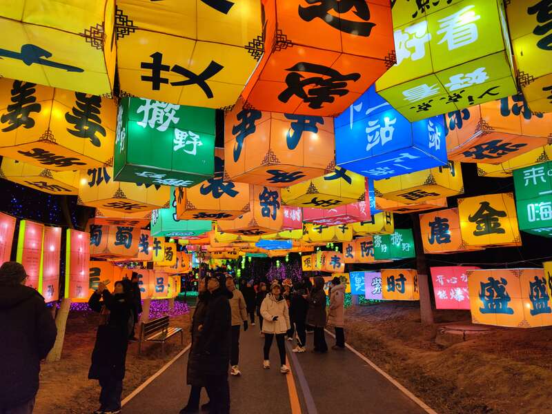 园区内五大主题展区各具亮点,奇幻互动区、非遗文化区、中轴文脉区等区域人气居高不下。在奇幻互动区,会变色、会发声的水母灯组悬空闪烁,宛若梦幻海地世界,成为亲子游客的热门打卡点。“孩子在这看了快有半个钟头了,拉都拉不走。”来自通州的柴女士,笑着告诉记者。百家姓灯廊前,游客纷纷寻找自家姓氏,灯光照耀下的姓氏灯笼连成璀璨星河,氛围感拉满。