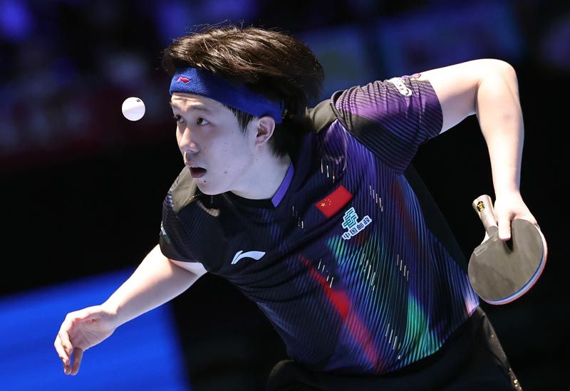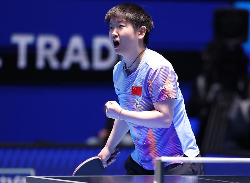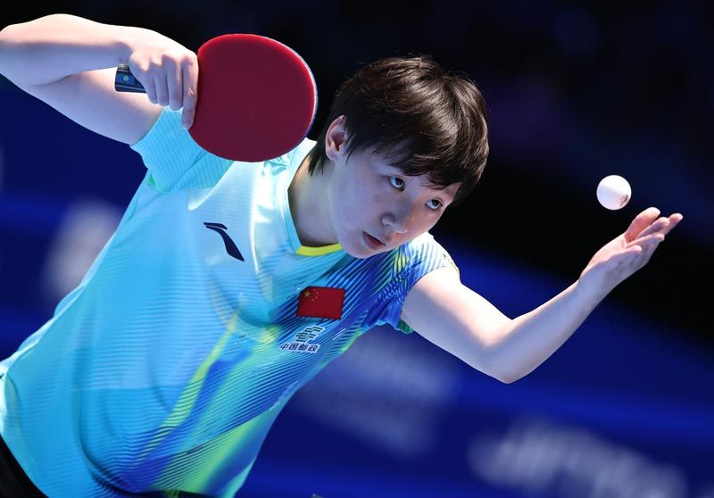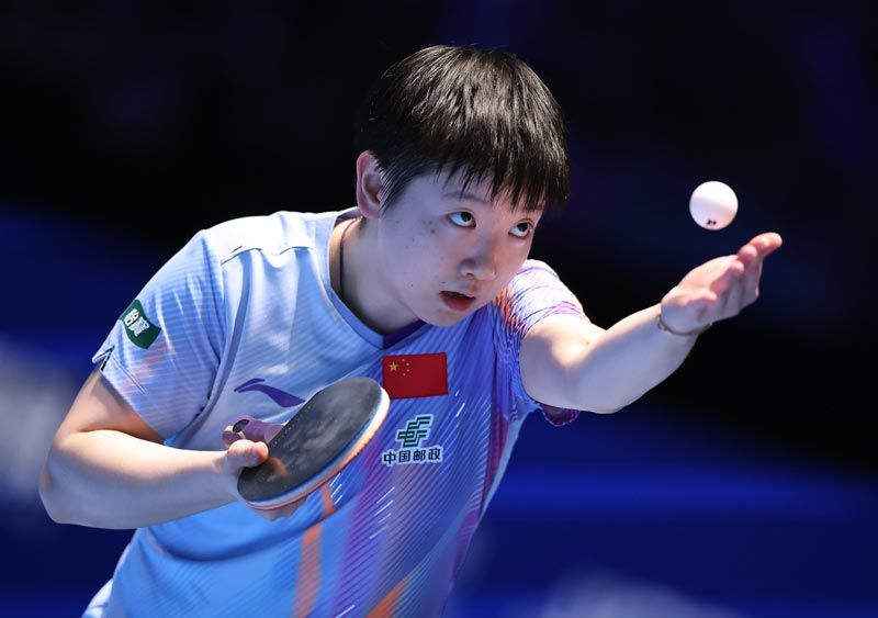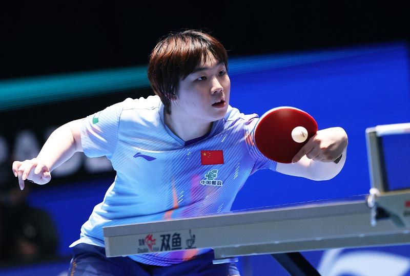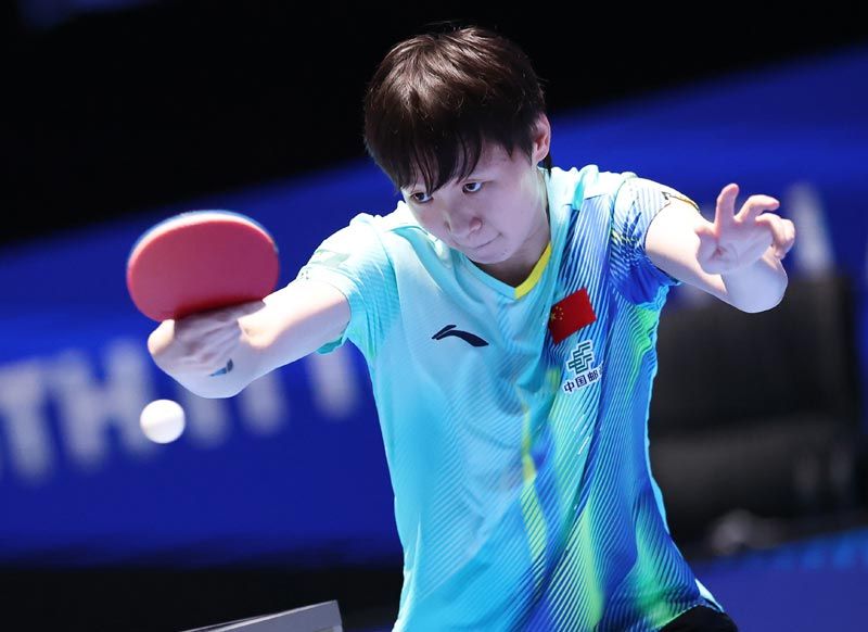 王曼昱在比赛中国反手击球。刘占崑/摄