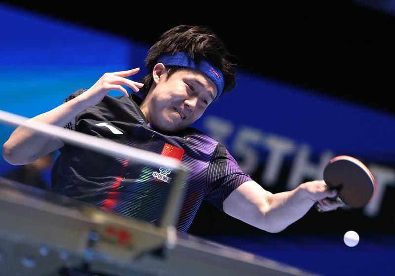 王楚钦在比赛中奋力击球。刘占崑/摄