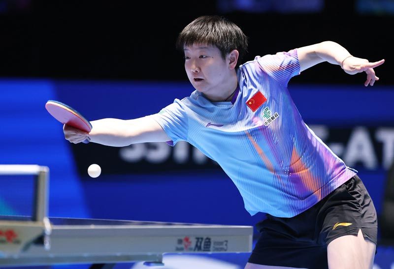 孙颖莎在比赛中反手击球。刘占崑/摄