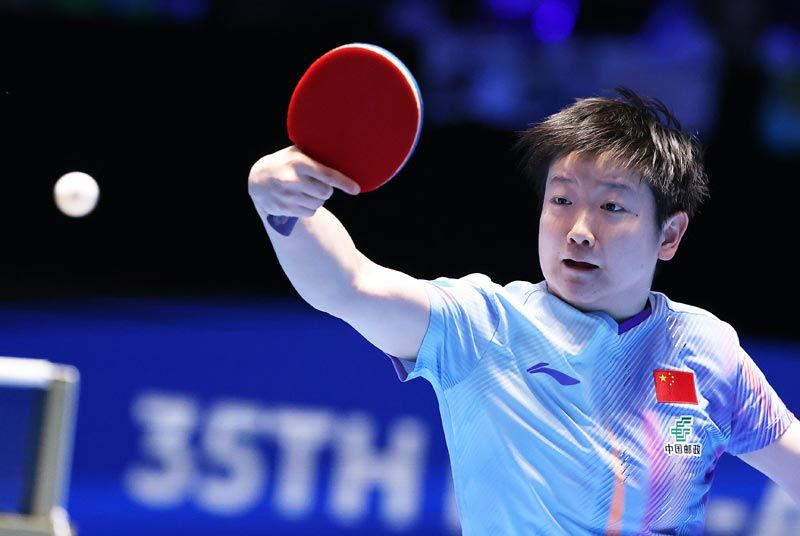 孙颖莎在比赛中奋力回球。刘占崑/摄