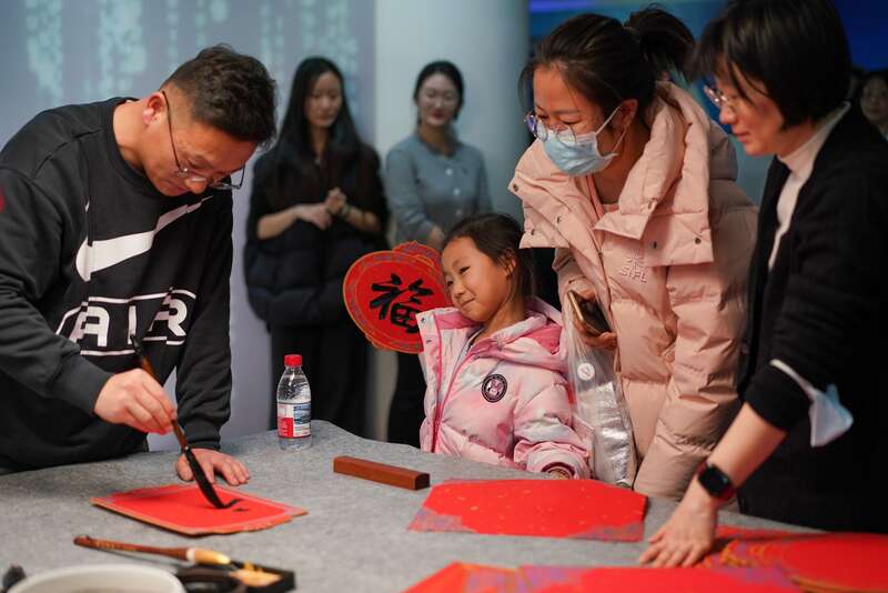 中国青年报客户端讯(中青在线见习记者 胡庆章 记者 郭艳丽)2月10日,农历腊月二十三,是北方小年,国家图书馆总馆北区二层举办“书春送福”活动,馆内员工现场书写“福”字,为广大读者送出马年的新春祝福。