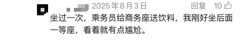 2025年,多位网友在社交平台发文称,购买了高铁一等座车票后发现座位被安排到了商务舱车厢内,本来以为捡到便宜,结果发现座椅和商务舱内的其他座椅明显不同,有些尴尬。