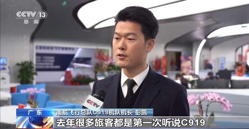 南航飞行总队C919机队机长 彭凯:去年很多旅客都是第一次听说C919,今年可能有些不一样,很多旅客已经主动选乘去拍照打卡这个机型了。