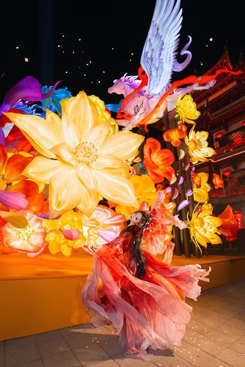 上海豫园灯会近年来火爆出圈,马年豫园灯会更是首次实现园内六区同亮,九曲桥的灯组依旧延续着《山海经》神兽的设计。而七奈的镜头,也成了传统年俗与年轻人对话的一道桥梁。为了让镜头里的年味更贴合年轻人的审美,七奈不断探索国风的多元表达。豫园非遗彩灯与泡泡玛特的联名灯组,在她的镜头里成为传统与潮流对话的最佳舞台。“这不是对传统文化的背离,而是另一种意义的创新传承。”七奈说。
