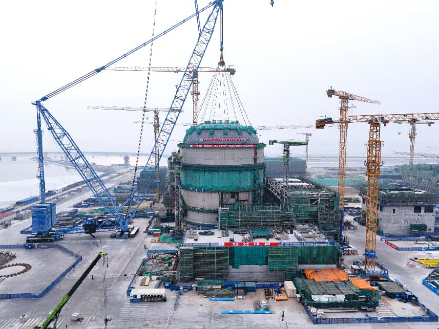 这个小年,丁磊和他的同事们虽未能与家人团聚,但望着那座稳稳坐落于核岛顶端的银色巨构,丁磊心中涌起一股难以言喻的自豪。顶封头精准就位,标志着徐大堡核电1号机组建设从土建施工全面转入安装阶段。