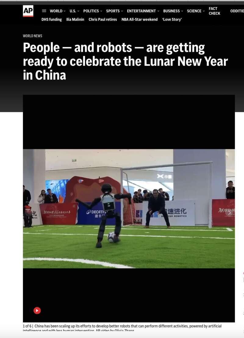 美联社、英国路透社和美国财经媒体CNBC等媒体报道称,农历新年前夕,中国各地已开始紧锣密鼓地筹备各式庙会和庆祝活动,“机器人将再次成为主角”。