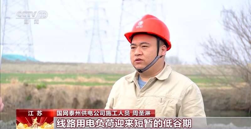 国网泰州供电公司施工人员 周圣淋:春节期间,大多数工厂都停工了,线路的用电负荷迎来短暂的低谷期,是我们线路迁改难得的黄金时间。