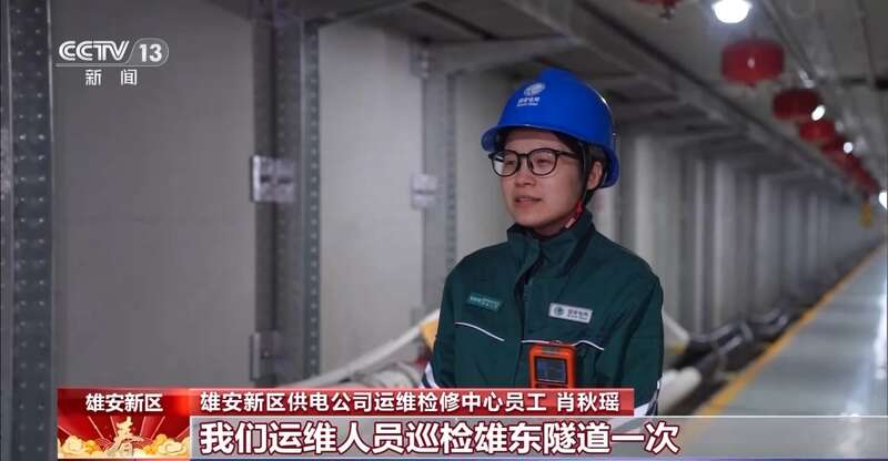 雄安新区供电公司运维检修中心员工 肖秋瑶:依靠人力,我们运维人员巡检雄东隧道一次大约需要20小时。现在有了智能巡检机器狗以后,巡检效率能提升80%。