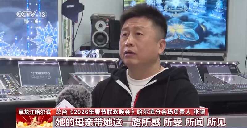 总台《2026年春节联欢晚会》哈尔滨分会场负责人 张骥:于是我们想以一个母亲是哈尔滨人、孩子是第一次到哈尔滨,以她的童真视角,她的母亲带她这一路所感、所受、所闻、所见,给大家有一个更直观的主观视角,能够让大家更真切地感受到,我们想展现的这个城市的特色、这个城市的气质。