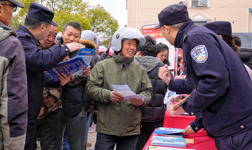 2026年2月25日,江苏省海安市公安局滨海新区派出所民警走进辖区人力资源招聘洽谈会现场摆摊设点,通过发放宣传资料、现场讲解、互动交流、接受咨询等方式,向求职者宣传反诈知识,增强他们的识骗防骗能力。