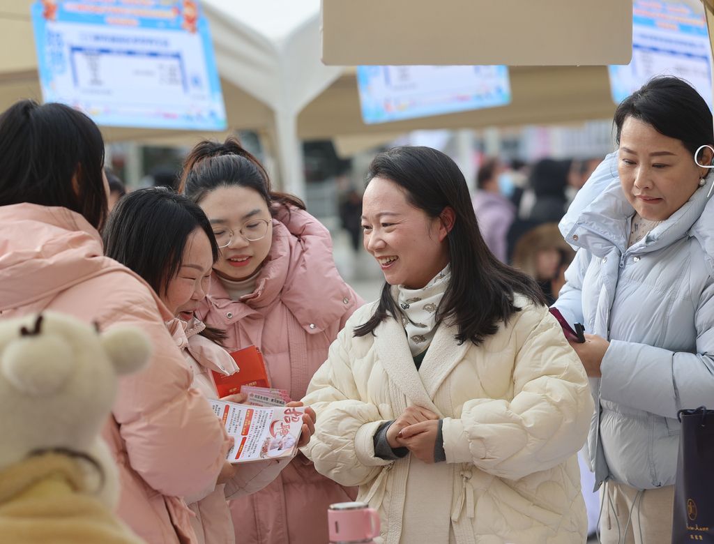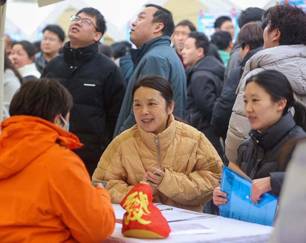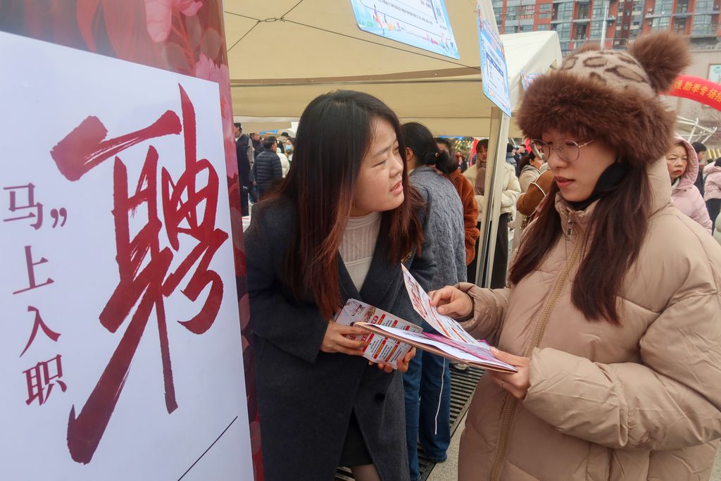 2026年2月25日,河南三门峡,求职者在2026年春风行动暨就业援助季专场招聘活动现场与用人单位交流就业信息。当日,三门峡市举办专场招聘会,200余家重点企业提供1.5万多个优质就业岗位,为求职者和用人单位“牵线搭桥”,促进就业。