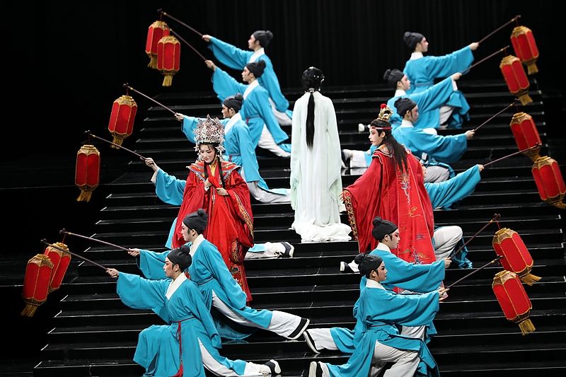 2026年2月25日,台湾桃园,浙江小百花越剧团《我的大观园》在台湾桃园展演中心上演,这是该剧团时隔近15年再度来台献艺。图为贾宝玉大婚冲喜场景。中新社记者 刘大炜 摄