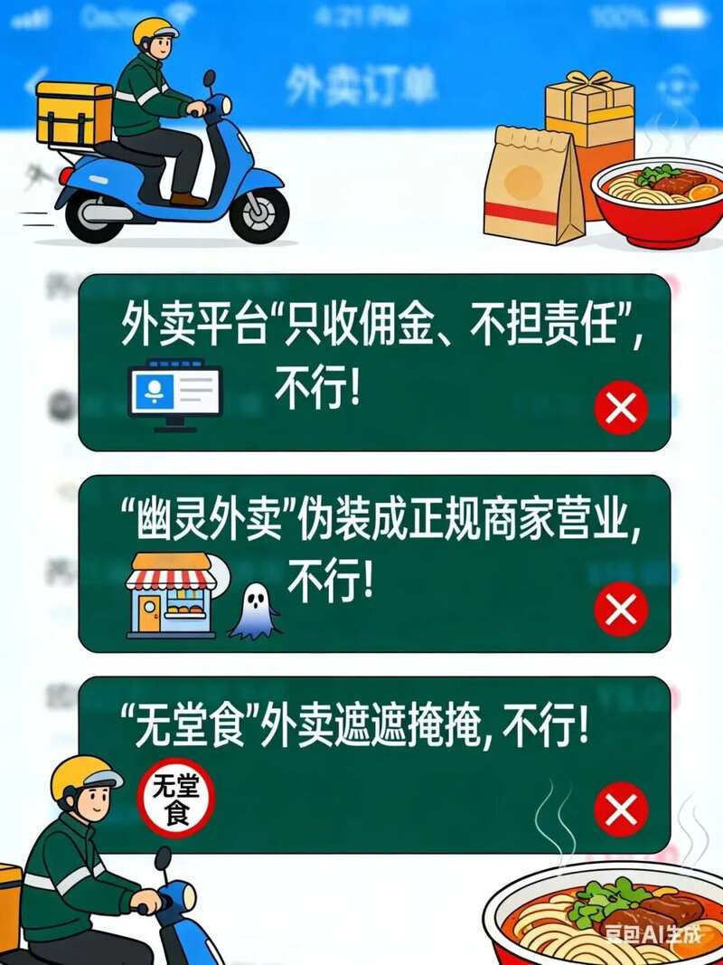 点到无资质、无固定场所的“幽灵外卖”;