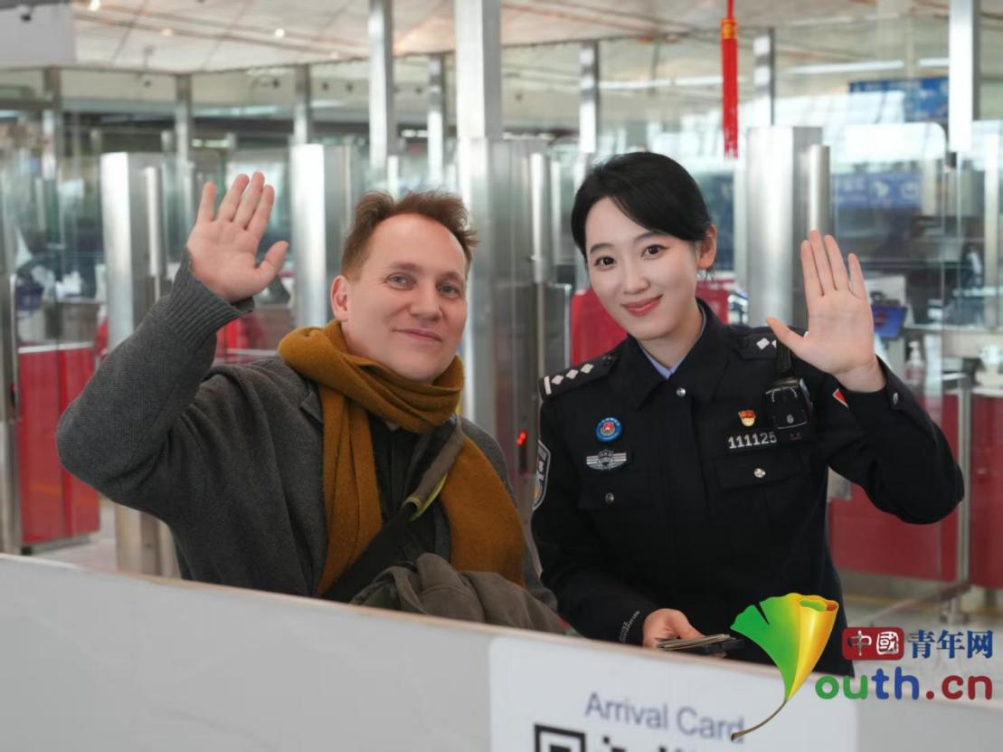 在等待区,民警符夏正给一群英国旅客讲解240小时临时入境许可政策。原本满脸烦躁的旅客们眼睛亮了——“也就是说,我们可以出去看看故宫、长城?”