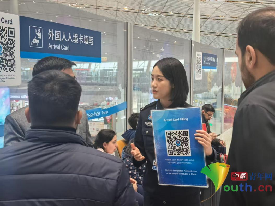 “多语种服务执勤组”的民警何洋,毕业于北京外国语大学乌尔都语专业,她接过一位巴基斯坦老人递来的护照,熟练地指导他们进行外国人入境卡网上填报。乌尔都语像溪水一样从她嘴里流出来,老人紧锁的眉头瞬间舒展。很快,她身后排了一些咨询业务的巴基斯坦旅客。