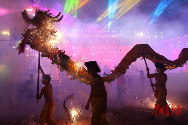 2月27日晚,2026年宾阳炮龙节百龙舞宾州活动在广西南宁市宾阳县举办,上百条炮龙在县城的大街小巷上演“炮震千山醒,龙腾百业兴”的壮观景象。 据了解,宾阳县拥有县级以上非遗代表性项目45项,其中国家级非遗宾阳炮龙节被誉为“东方狂欢节”。这一流传于宾阳县的民间节庆活动有近千年历史,是民族文化交融的结晶。炮龙节举办期间,吸引了全国各地的游客前来打卡体验,感受浓浓年味。 中青报·中青网记者 谢洋/摄