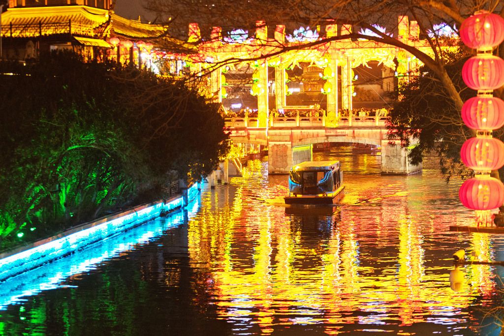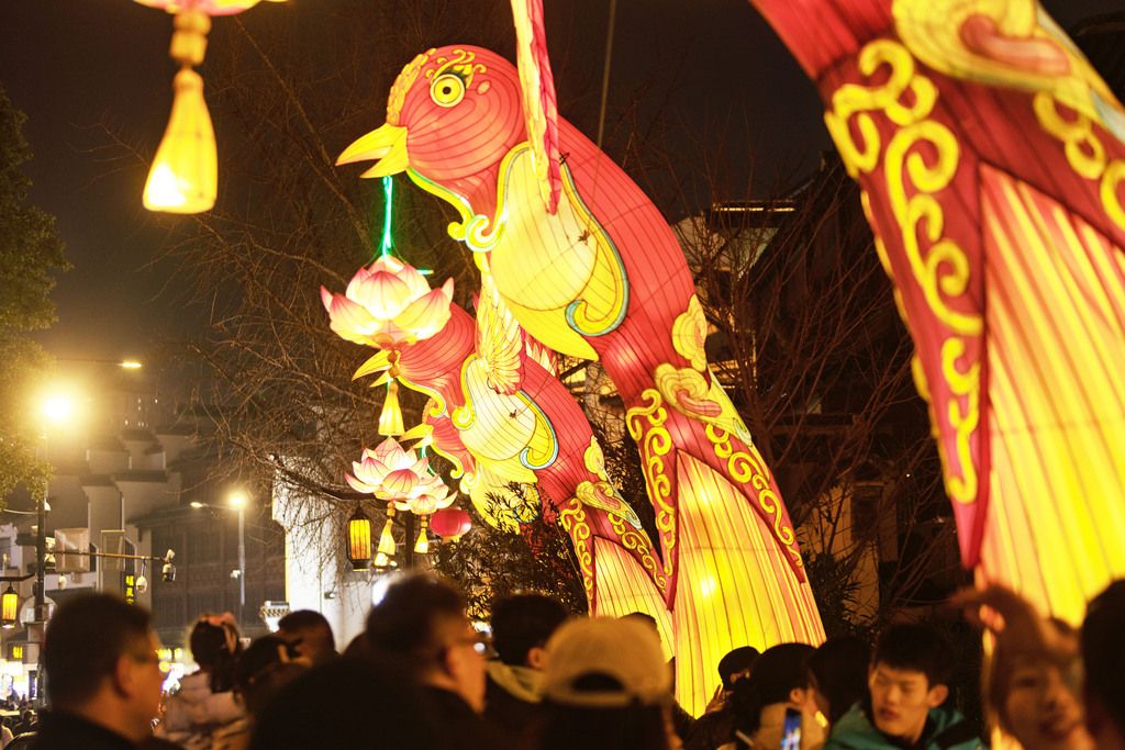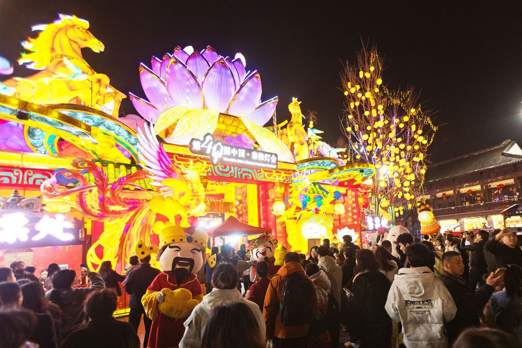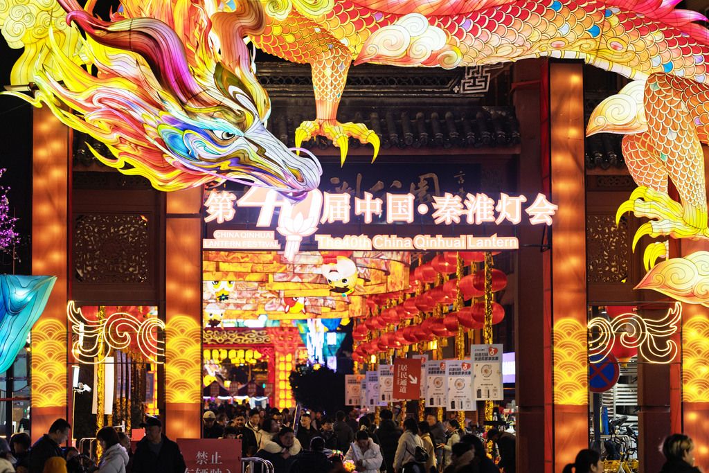 2026年2月28日,南京市,游客在夫子庙景区赏灯观景游玩。元宵佳节临近,江苏省南京市夫子庙景区人潮如海,人们在快乐中赏灯观景游玩。